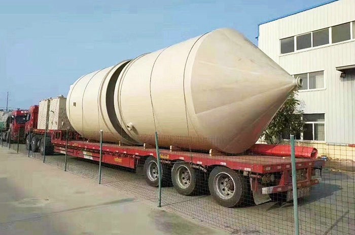 錐底儲罐采用意大利技術(shù)制作,內(nèi)襯層為噴射成型制作,內(nèi)襯層的富樹脂層樹脂含量達(dá)95%,內(nèi)襯層樹脂含量為80%。儲罐內(nèi)襯層采用錐形水泥模具制作,儲罐結(jié)構(gòu)層為整體纏繞制作而成。罐體底部為帶鋼套環(huán)支腿,大大提升儲罐穩(wěn)定性。攪拌型錐底立式儲罐,內(nèi)設(shè)擋流板,罐體頂部設(shè)置支撐架,儲罐輕質(zhì)、高強(qiáng),耐腐蝕性強(qiáng)、使用壽命長。